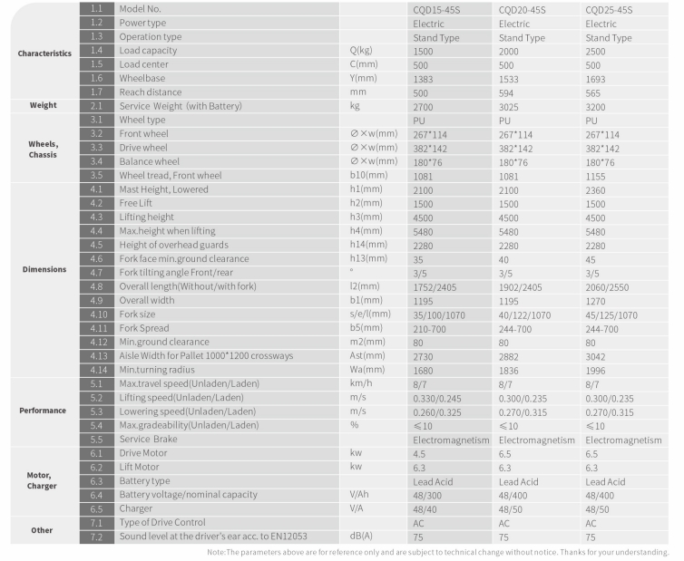 - Tight structure,flexible operation.Central fixed driving unit,lowered center of gravity and good stability.suitable for big load and high lift.