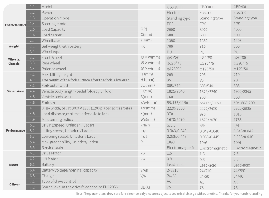 - Ergonomics designed control handle integrates multiple controls (Acceleration, Horn, Emergency reverse button, Lifting and lowering button)